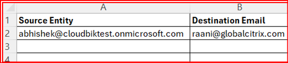 In the Destination column, enter the Google Workspace email address where the Shared Drive was created.