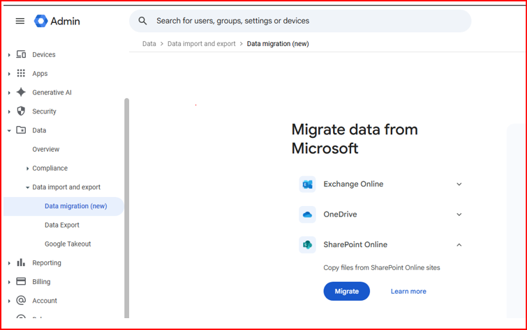 Steps to Migrate Data Using Google Workspace (Admin Console)